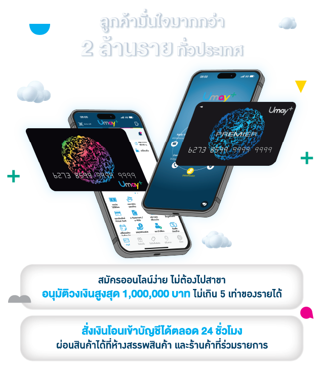 สำหรับบัตรกดเงินสดยูเมะพลัส - รายได้ประจำตั้งแต่ 20,000 บาทขึ้นไป