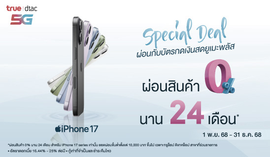 ผ่อน iPhone 17 Series 0% นาน 24 เดือน ที่ทรูช็อป ดีแทคช็อป
