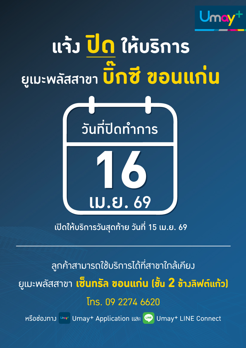 ประกาศจากยูเมะพลัสแจ้งปิดให้บริการสาขา บิ๊กซีขอนแก่น