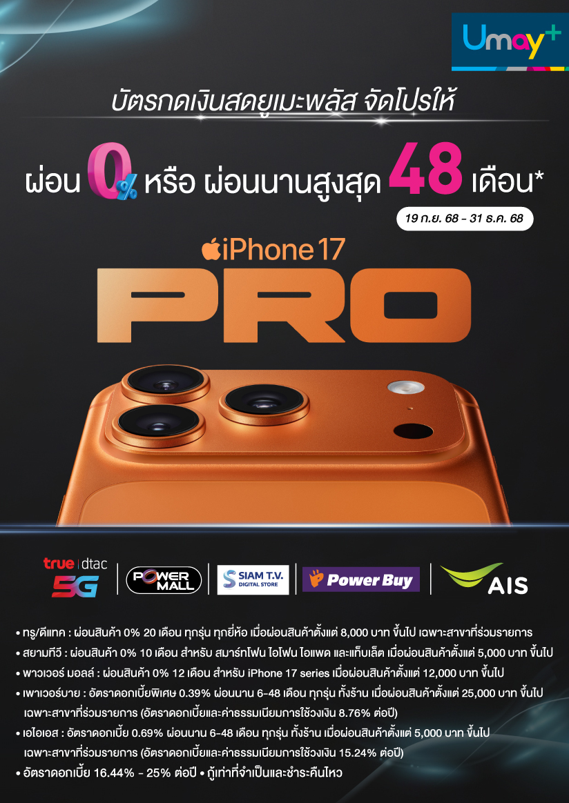 - ผ่อน 0% 20 เดือน ยอดผ่อนตั้งแต่ 8,000 บาท ขึ้นไป ที่ True shop และ dtac shop
