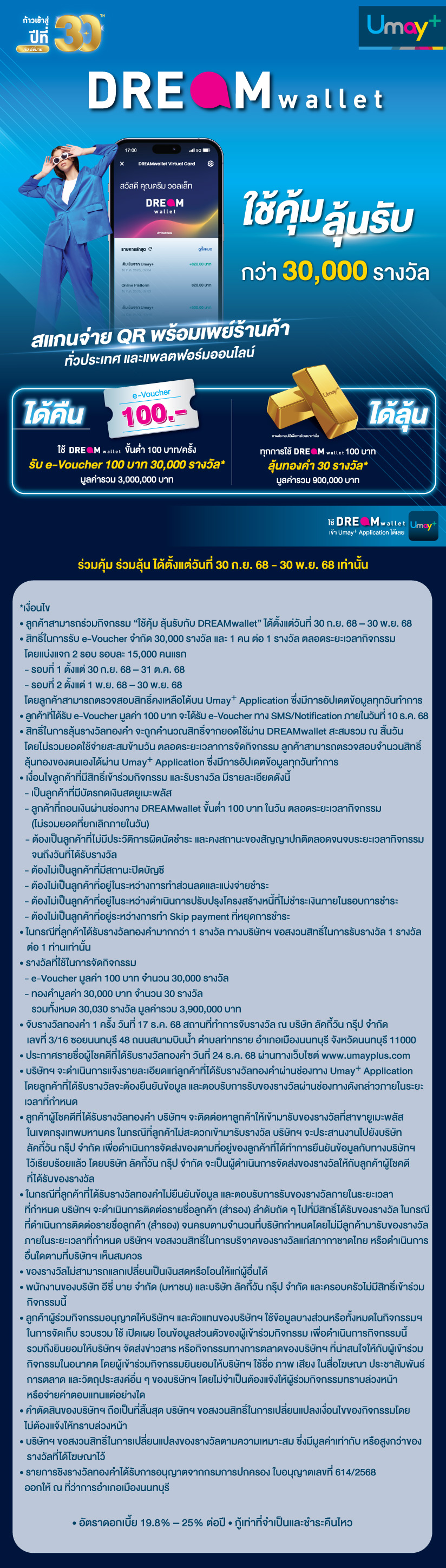 ระยะเวลาแคมเปญ: 30 ก.ย. 68 – 30 พ.ย. 68 เท่านั้น