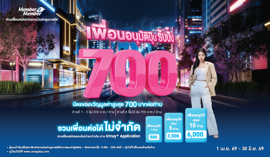 รับสิทธิพิเศษสุดคุ้มกับโปรโมชันบัตรกดเงินสดยูเมะพลัส ทั้งอัตราดอกเบี้ยสุดพิเศษ ผ่อนสบาย และของสมนาคุณ
