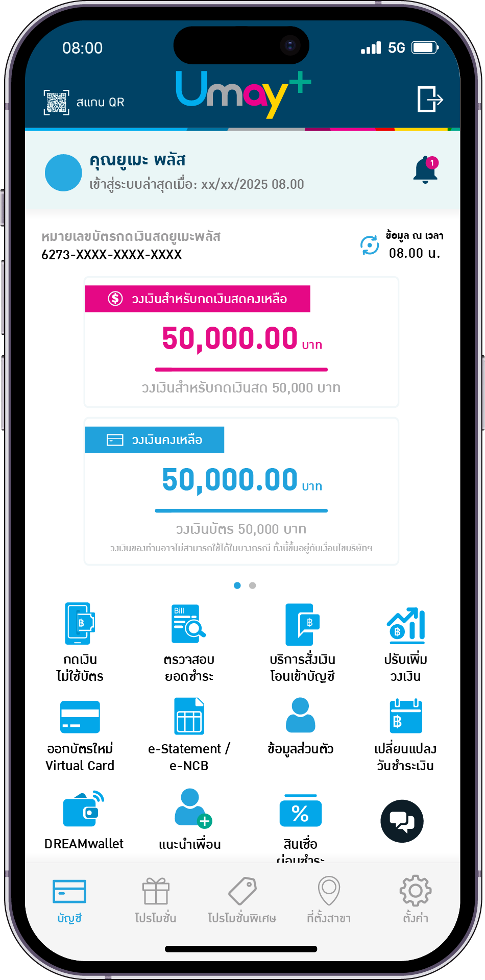 ท่านสามารถทำรายการกดเงินไม่ใช้บัตร ได้ง่ายๆ ผ่าน Umay+ Application และไปสแกน QR Code ที่ตู้ ATM ที่เลือกทำรายการ