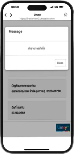 ท่านสามารถทำรายการโอนเงินเข้าบัญชีผ่าน Umay+ LINE Connect ได้ง่ายๆ โดยการสั่งเงินโอนเข้าบัญชีทุกธนาคาร และจะได้รับเงินทันทีหลังจากทำรายการสำเร็จ